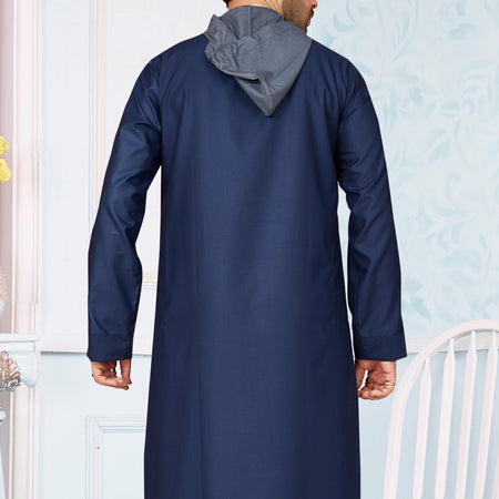 Dark Blue Embroidered Thobe for Adults – 06EM