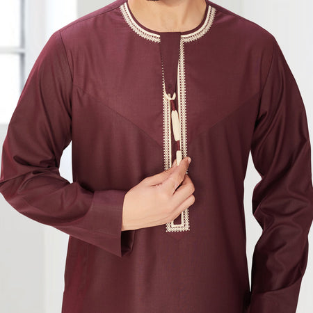 Dark Maroon Traditional Embroidered Omani-Emirati Thobe with Tassel for Adults – 10OM