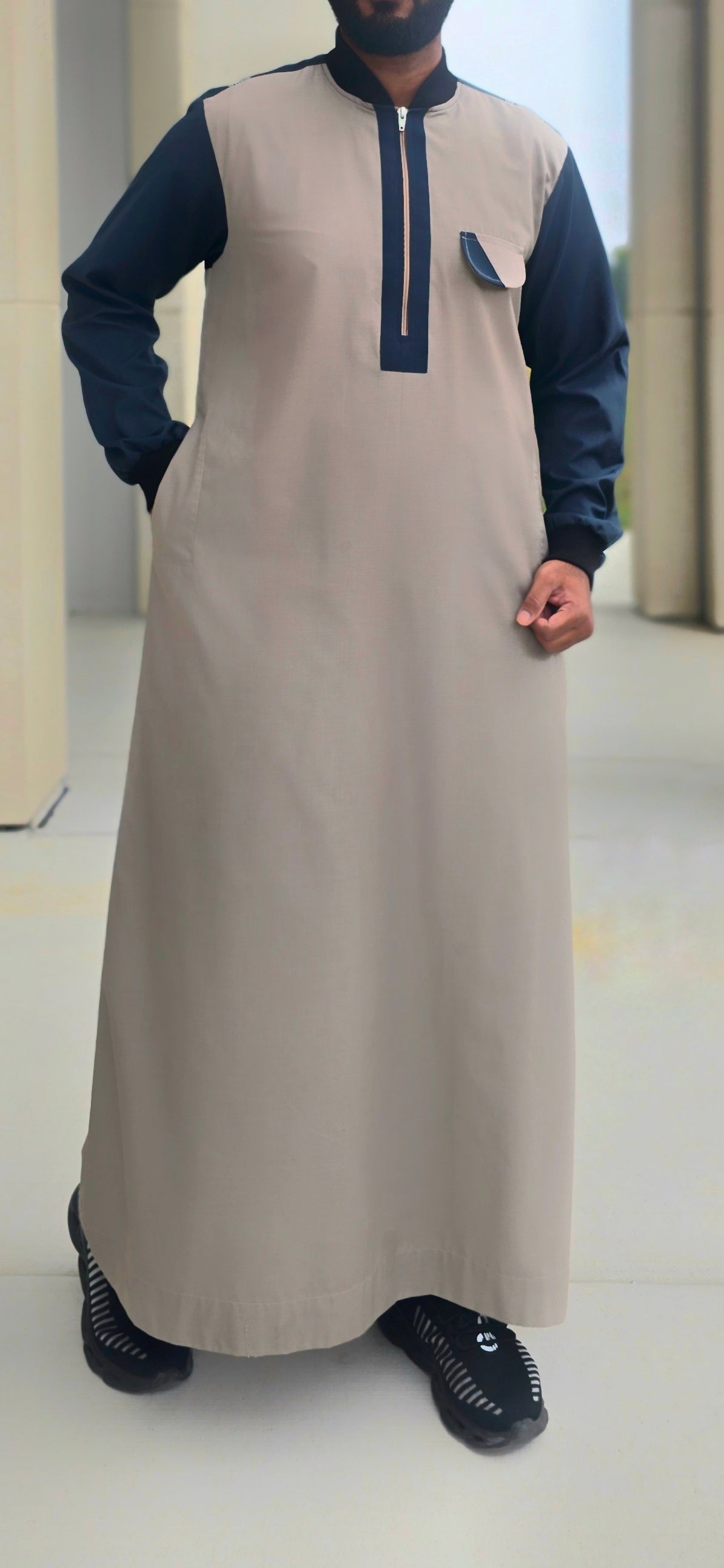 This Sandy and Green Thobe is a perfect blend of subtle tones and unique style, crafted for elegance and comfort. Designed with premium-quality fabric, it’s suitable for all seasons and versatile enough for daily wear or special occasions.